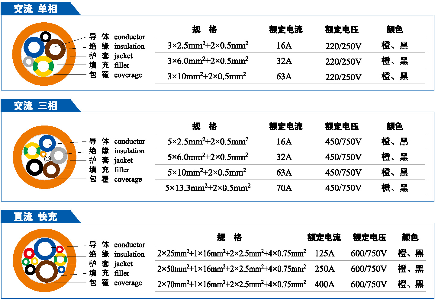 電動汽車充電電纜是一種用于電動汽車與充電樁或電源插座之間的連接軟電纜,無氧銅導體保證了導電效果,TPE絕緣材料具有柔軟,強度高,護套采用高性能TPE 其有耐氣候,耐高.低溫,耐摩擦等特征。